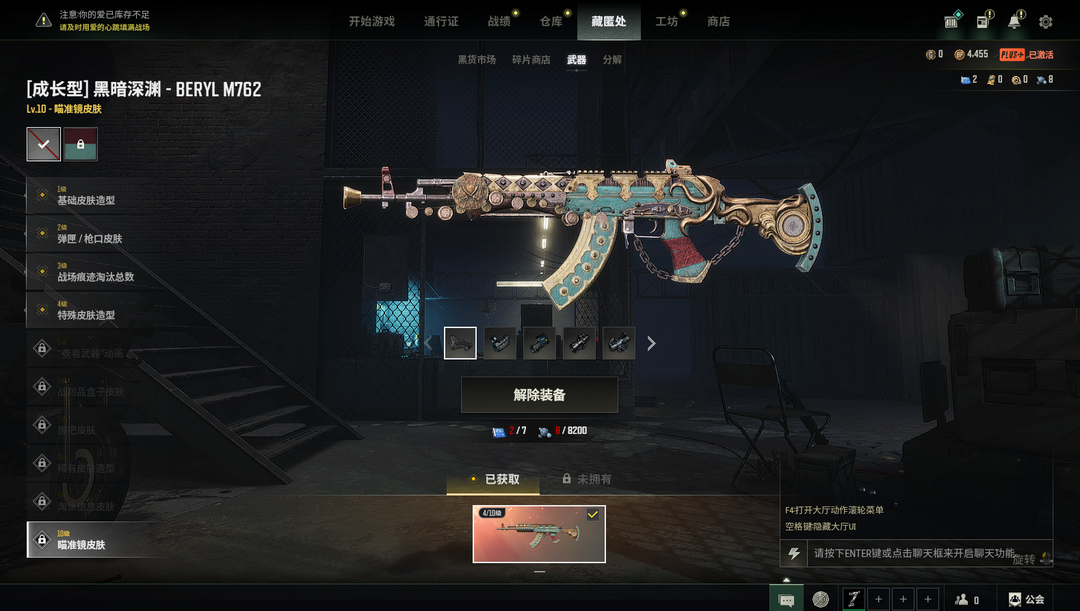 可排位-④级水麒麟M762✅孙悟空AKM✅梅花同花M762✅金色落叶M4✅无慈悲98K✅变色信号枪