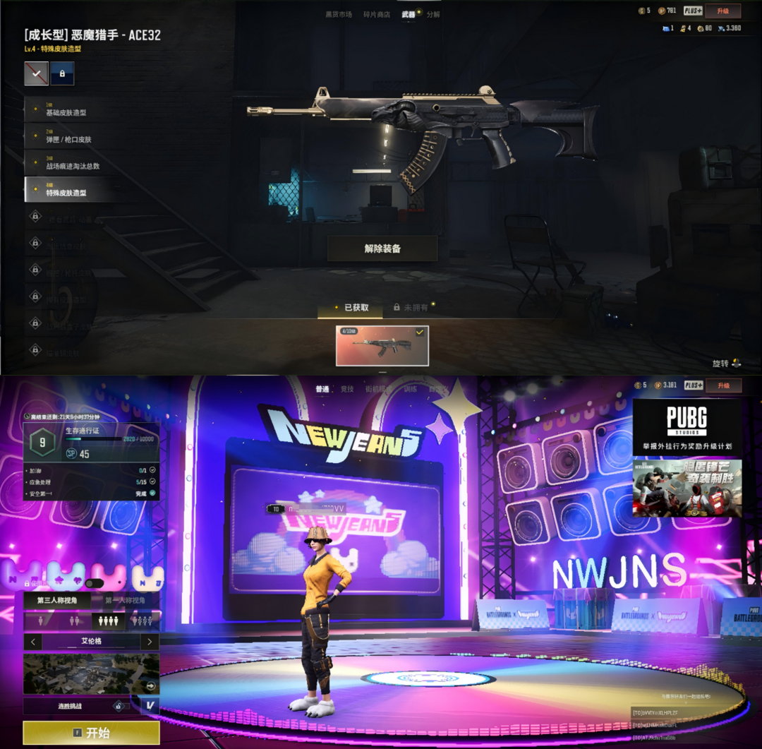 装备描述:可排位★炫酷女团大厅★4级恶魔ACE32★黄东南亚★蟒蛇花园夹克★主播长裤★主播手套★拉风龙裤★白熊套★肌肉套装★小龙虾套装★枫叶M416★鸡斯卡-SCAR-L★青花M762
