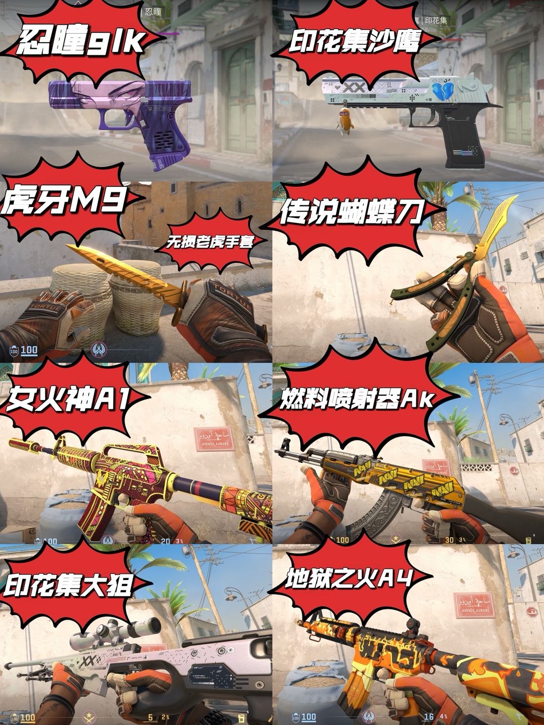 5E完美b+双刀❤️老虎精英.传说蝴蝶+虎牙M9❤️燃喷Ak❤️女火神A1❤️印花集大狙地狱之火A4