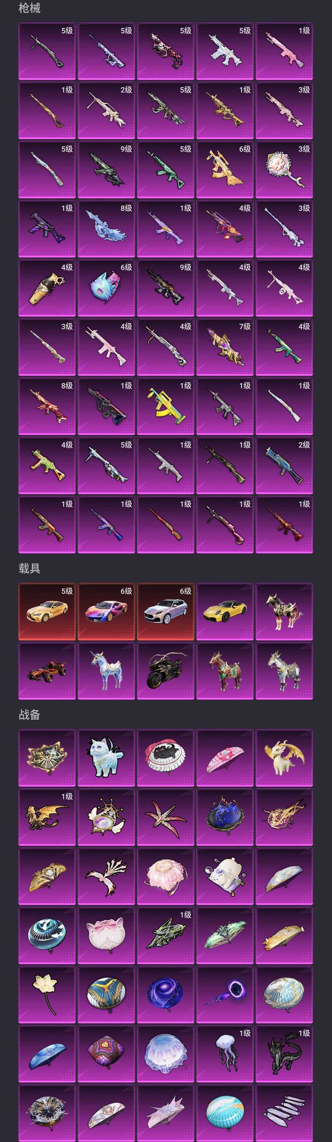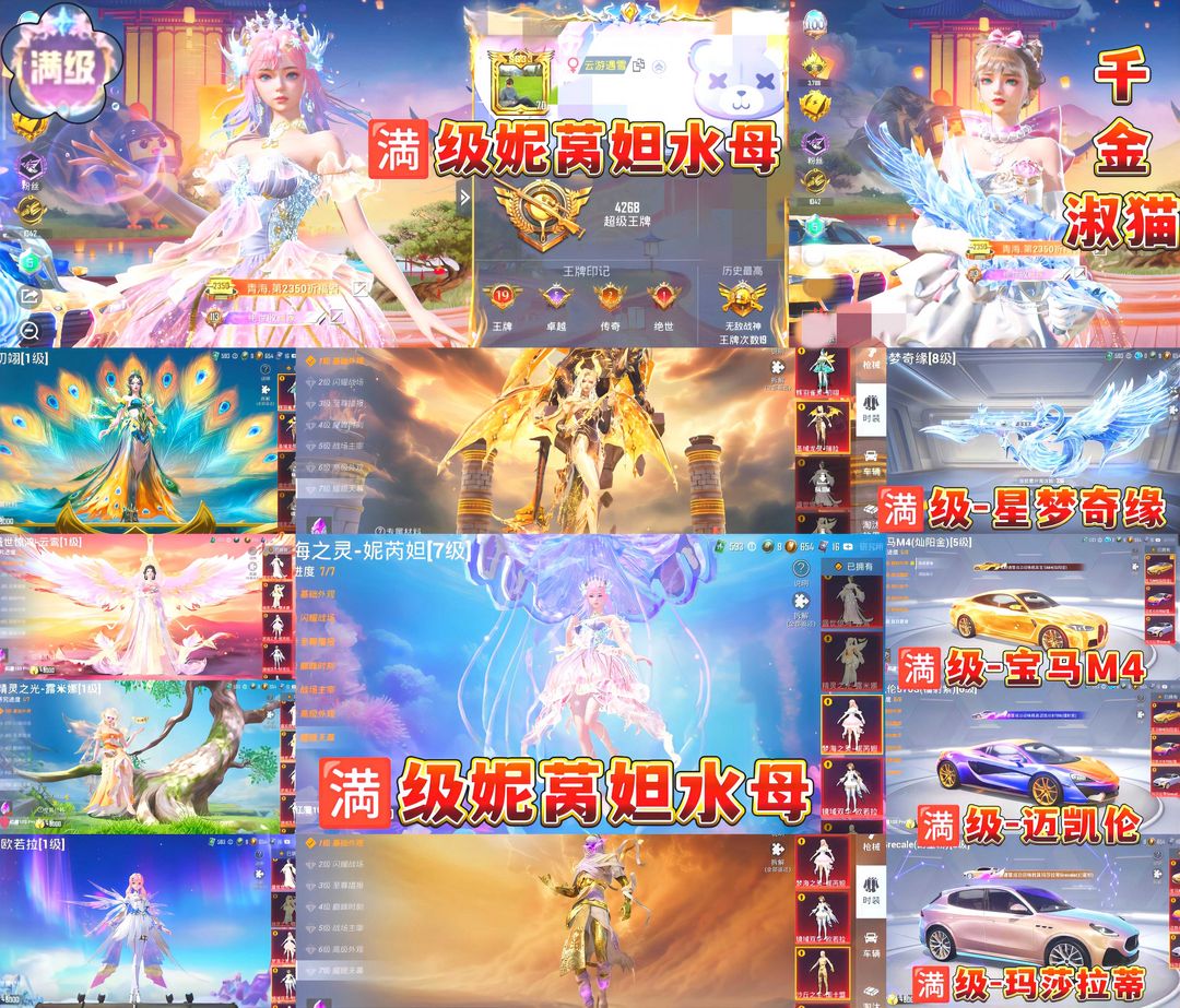 满级红装水母妮莴妲⭐️满级宝马M4⭐️满级星梦奇缘AUG满级万古烈焰幽暗骑士沙丘之主墨龙九天⭐️