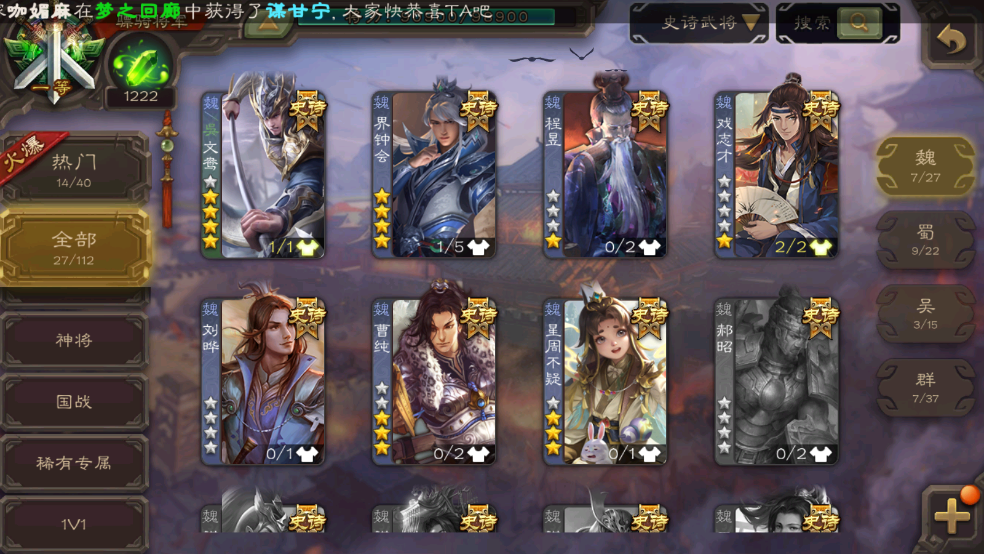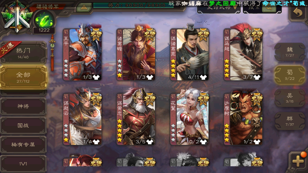 (有点将卡)动刘焉-势若万钧回廊文鸯-谋诸葛亮-谋黄忠-动界徐盛-动界左慈麹义(白马)动神吕布神赵云