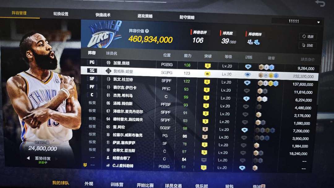 装备描述:满突满训时刻哈登,5雷霆杜,王朝雷霆套,可排位